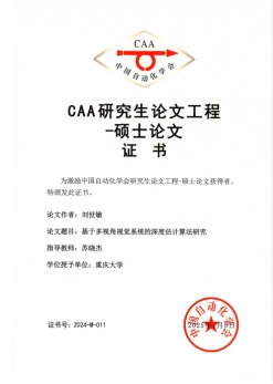 2025年10月10—12日,由中国自动化学会主办,哈尔滨工程大学、哈尔滨工业大学承办,哈尔滨理工大学协办的2025中国自动化大会(CAC2025)在哈尔滨召开,会上公布了2024年度CAA优秀硕士学位论文评选结果。我院苏晓杰教授指导的硕士研究生刘世敏的学位论文《基于多视角视觉系统的深度估计算法研究》荣获“2024年中国自动化学会优秀硕士学位论文奖”,是重庆大学首次获得该奖项。同时,该篇学位论文也荣获了“2024年度重庆市优秀硕士学位论文”。
