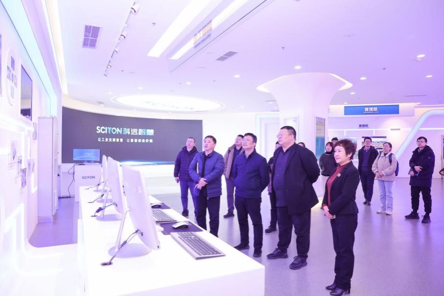 在科远智慧相关负责人的陪同下,尹宏鹏一行实地参观了企业产业展示厅,通过实地观摩与详细讲解,全面深入了解了科远智慧的创新发展历程、核心技术产品及前沿业务布局。